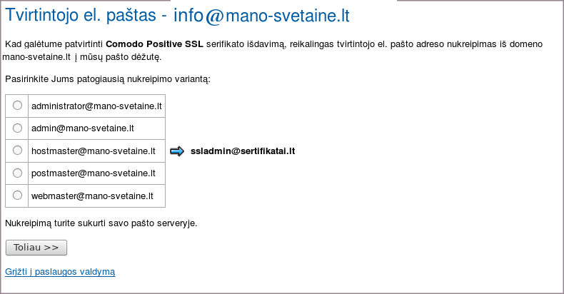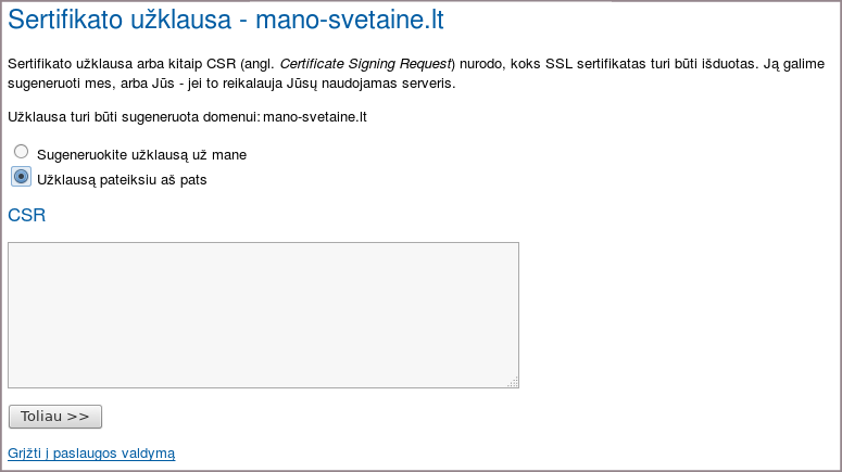 - SSL užsakymas ir diegimas į svetainę