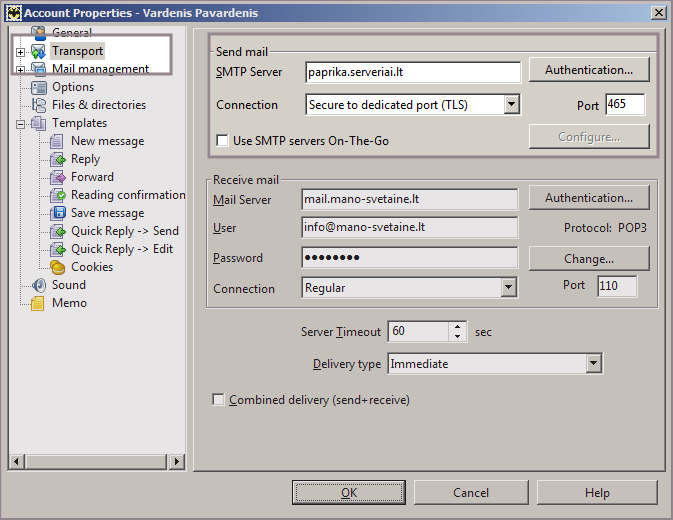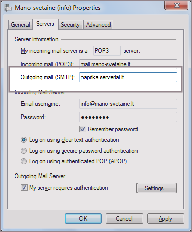 El. pašto programos konfigūravimas