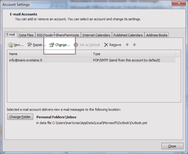 El. pašto dėžutės slaptažodžio keitimas