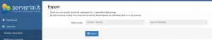 Šioje dalyje galite eksportuoti suarchyvuotus laiškus pagal tam tikrą laikotarpį. Visi to laikotarpio laiškai būtų išsiunčiami nurodytu el. paštu (suarchyvuoti laiškai būtų viename .zip faile).