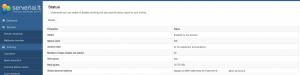 Įjungiamas periodinis statistikos siuntimas apie visą domeną. Varnele pažymėkite Report enabled:, nurodykite kokiu el. paštu siųsti informaciją (Recipient Address:) ir kaip dažnai (Report Frequency:). Pažymėjus "Include extra spam table:" bus siunčiama detalesnė SPAM laiškų lentelė, o "Send report with no quarantined messages:" nesiųs blokuotų laiškų sąrašo.