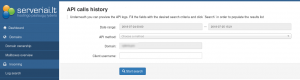 Šioje skiltyje galima peržiūrėti API užklausų istoriją pagal tam tikras kategorijas.