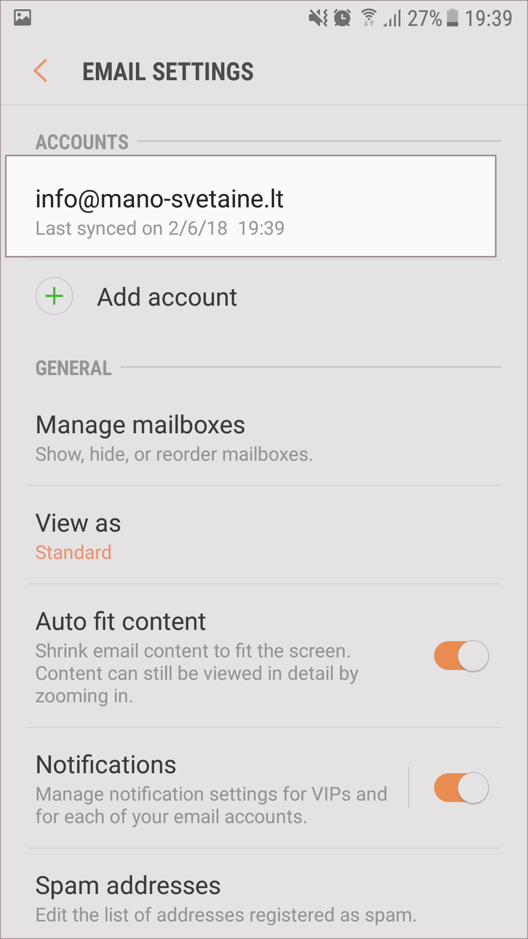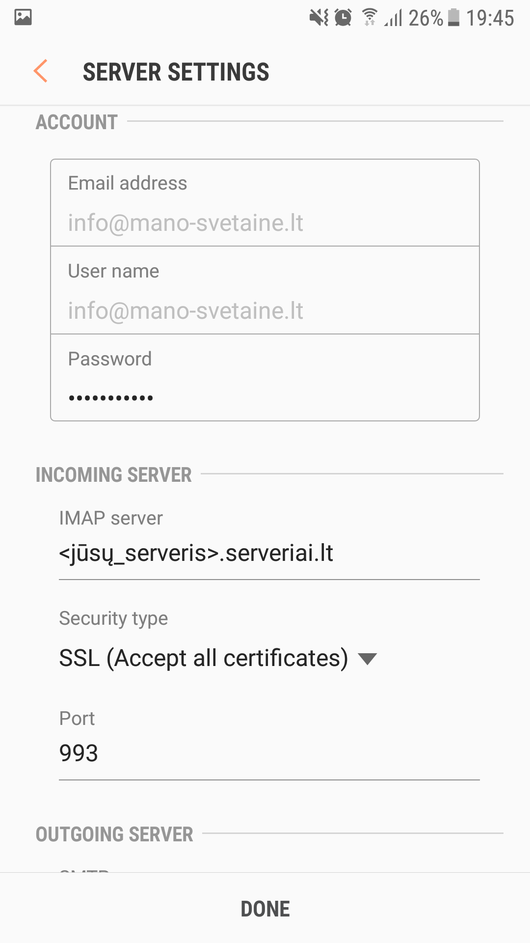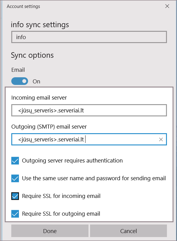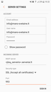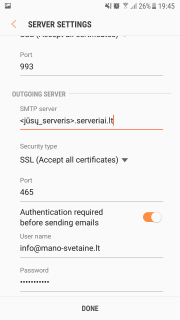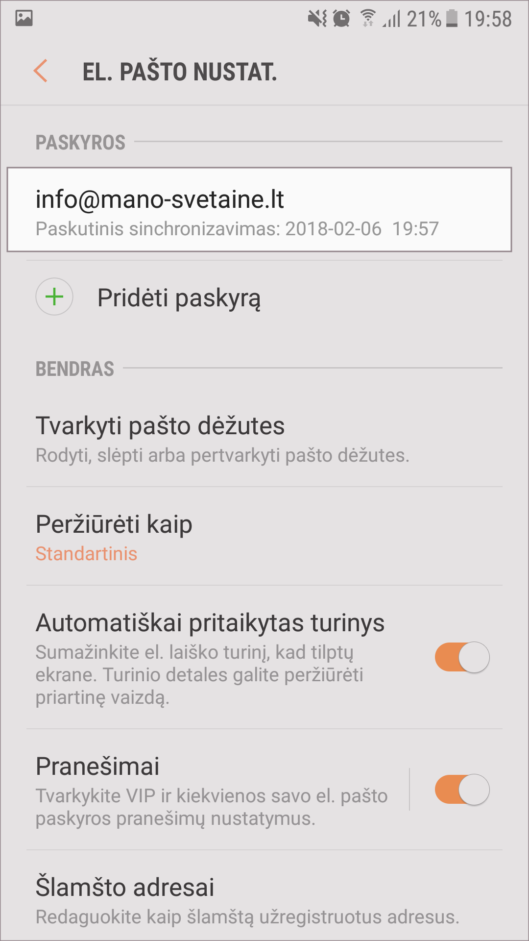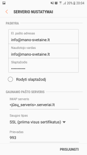 El. pašto programos konfigūravimas