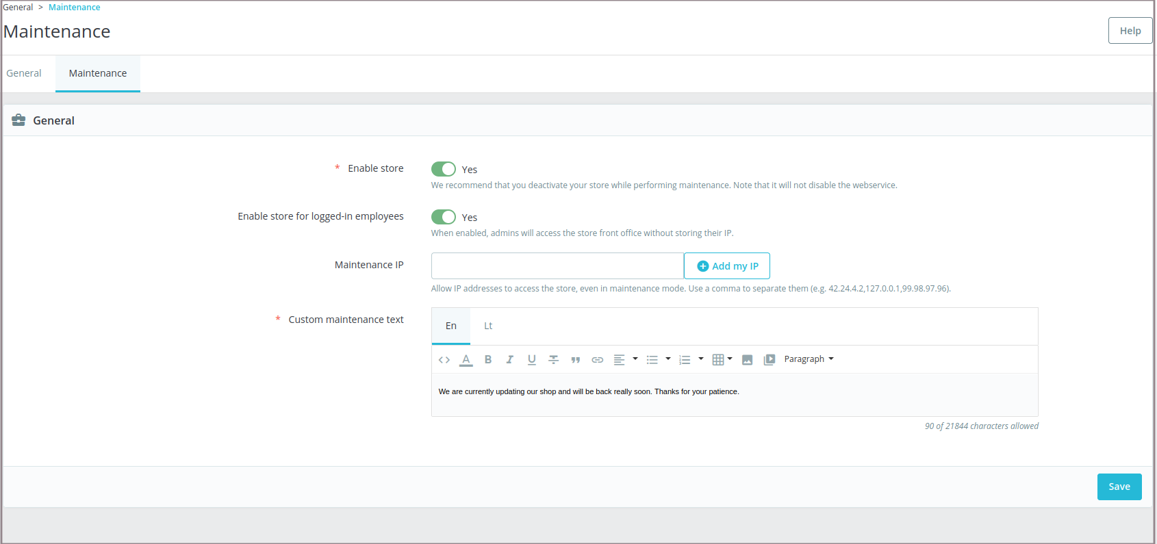 Prestashop maintenance nustatymai selected.png