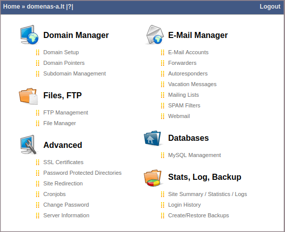 Domenų ir subdomenų valdymas