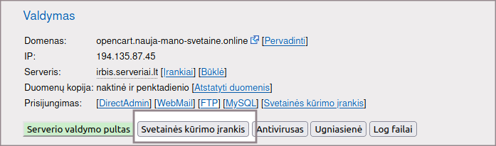 Svetainės perkėlimas į serveriai.lt